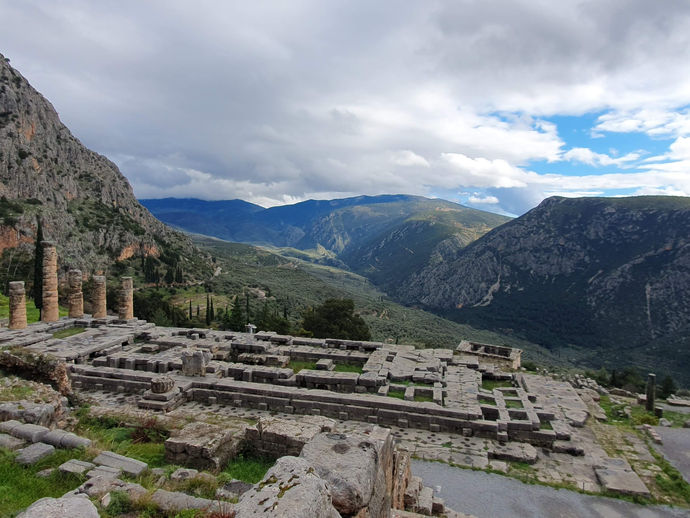 Ey Phoibos, doğruluk tahtından, Dünyanı kalbindeki yerinden Sesleniyorsun insanlara. Hiç yalan söylenmiyor, Zeus'un buyruğuyla, Doğruluk...